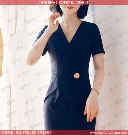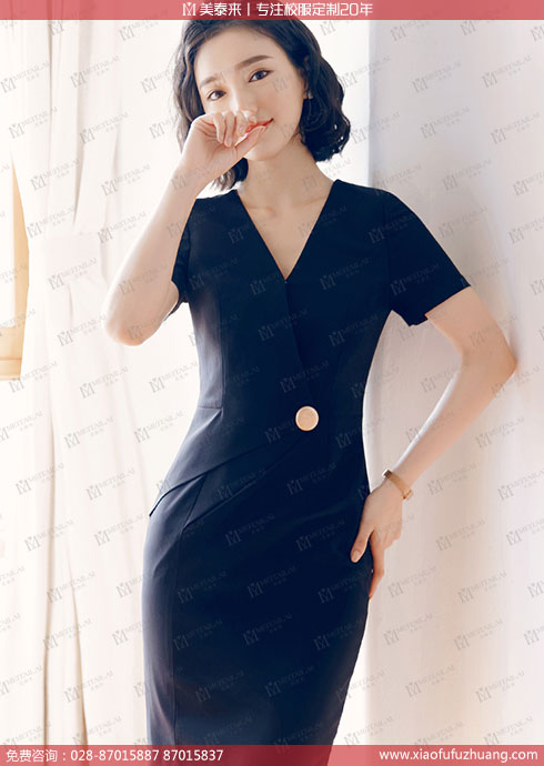 成都大学老师服装定做连衣V领职业装 夏季短袖修身工作服装