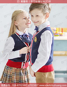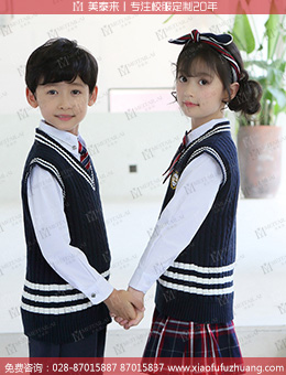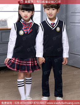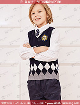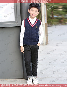 成都定做英伦校服小学校服针织毛衣校服 时尚秋季马甲校服订制