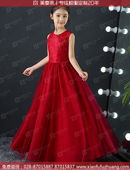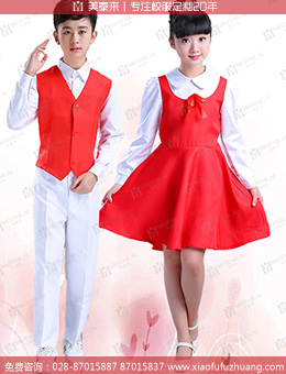 成都小学生校服定做晚礼服红色长裙