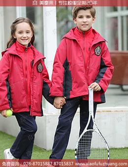 成都冬季小学生校服定做红色校服 冲锋衣拼色校服