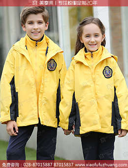 成都订做冬季小学生校服黄色外套 加绒保暖外套校服定做