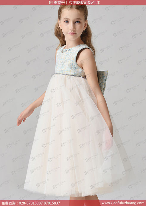 成都小学生演出服 白色纱裙女生礼服 小学生校服