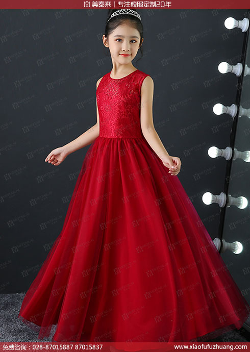 成都小学生校服定做晚礼服红色长裙
