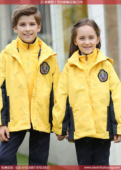 成都订做冬季小学生校服黄色外套 加绒保暖外套校服定做