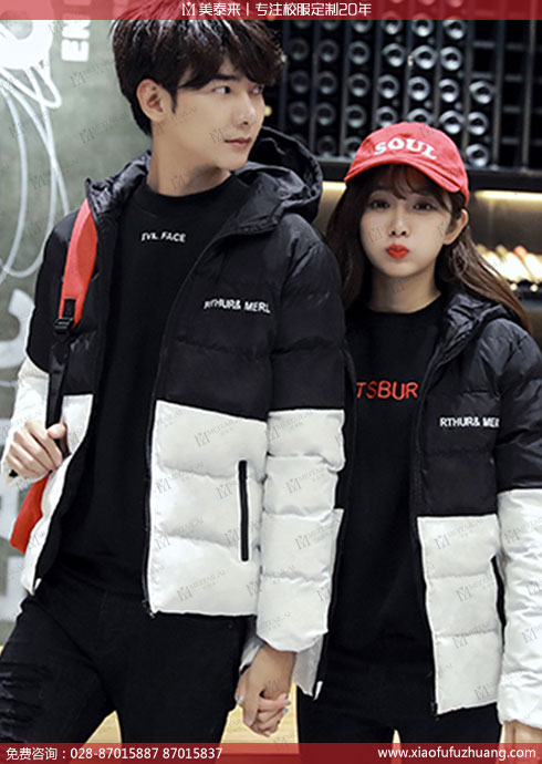 中学生校服订做 冬季校服拼色棉服校服